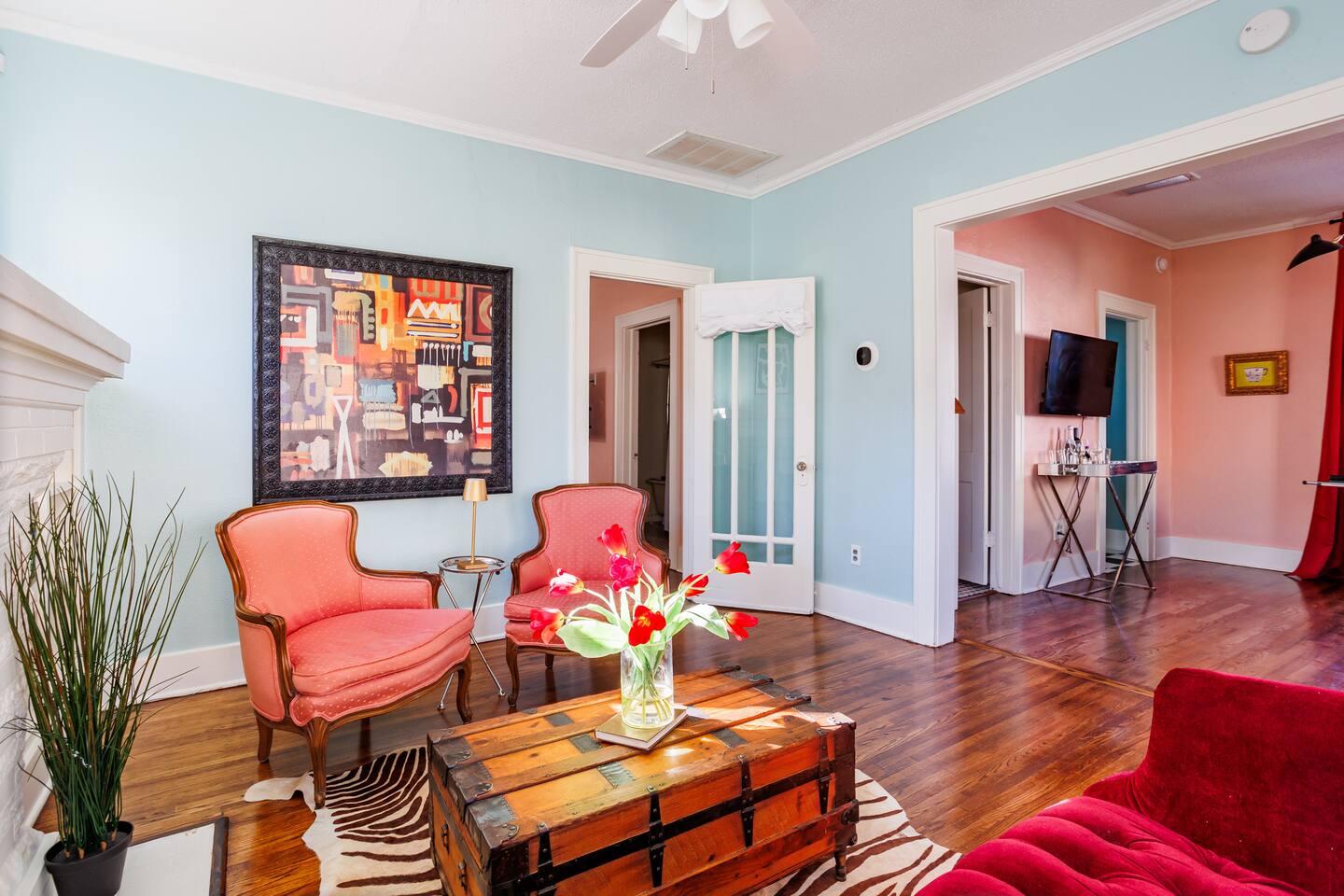 This is a diverse, up-and-coming neighborhood with very close proximity to Downtown OKC. It's one street east of the OU Medical campus. The area is improving, with new remodels and new construction among a few run-down houses. Like with other urban neighborhoods near a downtown area, you will see transient people walking around at times. We have a security system and outdoor cameras on the property and we recommend locking and parking your vehicle behind the gate overnight. This 1966 airstream has been in our family for decades. We’ve tried to maintain its vintage essence. While it’s not perfect, it’s a nostalgic space that we want to share with our guests. Please acknowledge that this is a BONUS space. You can sleep out here if you want to be adventurous, but it’s not included in the sleeping arrangements for the listing. There is no running water or bathroom in the airstream. Please be aware of the following potential fees: - There is an additional fee PER PET. - We offer a 1-hour early and late checkout for an additional $20 fee. - Smoking indoors will result in an additional $500 cleaning fee. - Lost items can be returned for a fee of $30. - There is a fee of $100 for unauthorized late checkouts past 11. - We have a "minut" noise/ smoke monitor inside the property. 3 notifications over 80 decibels will result in a $50 fee and we may ask your group to leave the property. - Date change requests are subject to a $30 fee along with the potential rate increase due to supply and demand for the date requested. - Airbnb automatically calculates the price based on the number of guests and pets that you select. If you enter in the wrong number of guests/ pets, then there could be additional charges.