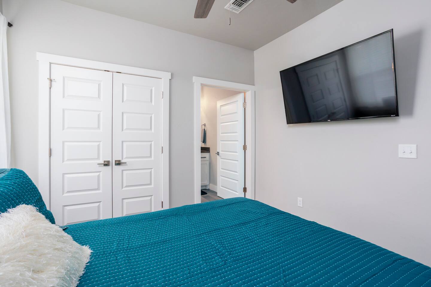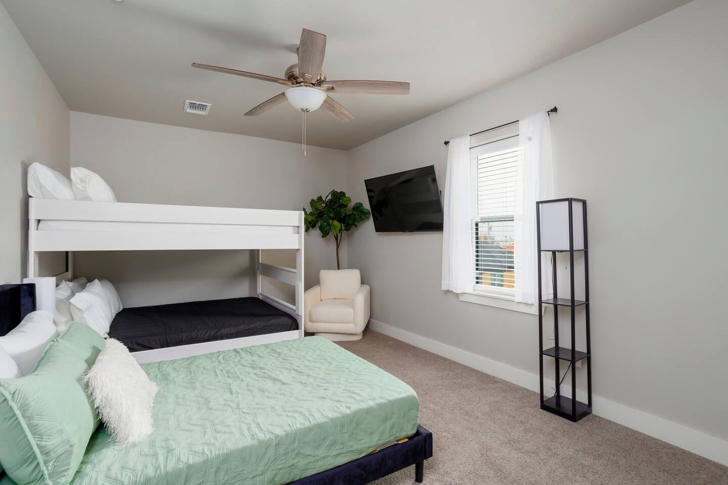 This is a 6-unit condo building and each unit has its own private balcony. This specific listing comprises of 2 of the 6 units. So in total your booking will include: -2 Living Rooms -2 Private Balconies -2 Full Kitchens -2 Washer/Dryers -6 Bedrooms (each with a TV & closet) -6 Full Bathrooms We have a separate listing that can sleep up to 56 people (the entire building) or smaller listings for 6-20 people. Please ask us if you have a larger group or smaller group, and we can direct you to the other listings. The building has 3 levels and there are 3 units on the east side and 3 units on the west side. Each side has an exterior entrance. There is no interior access between the east and west side. Inside, each unit is thoughtfully designed with modern amenities, including a fully-equipped kitchen, high-speed Wi-Fi, and comfortable furnishings. Unwind in the spacious living area, enjoy a peaceful night’s sleep in the cozy bedrooms, and make the most of your stay with easy access to all the exciting spots in the area. East H1 - floor 1 - sleeps 6 - Front Queen, middle Queen, back Queen East H3 - floor 2 - sleeps 10 - Front Full + Queen bunks, middle queen, back Queen East H5 - floor 3 - sleeps 10 - Front Full + Queen bunks, middle queen, back KING West H2 - floor 1 - sleeps 6 - Front Queen, middle Queen, back KING West H4 - floor 2 - sleeps 10 - Front Full + Queen bunks, middle Queen, back Queen West H6 - floor 3 - sleeps 10 - Front Full + Queen bunks, middle queen, back Queen