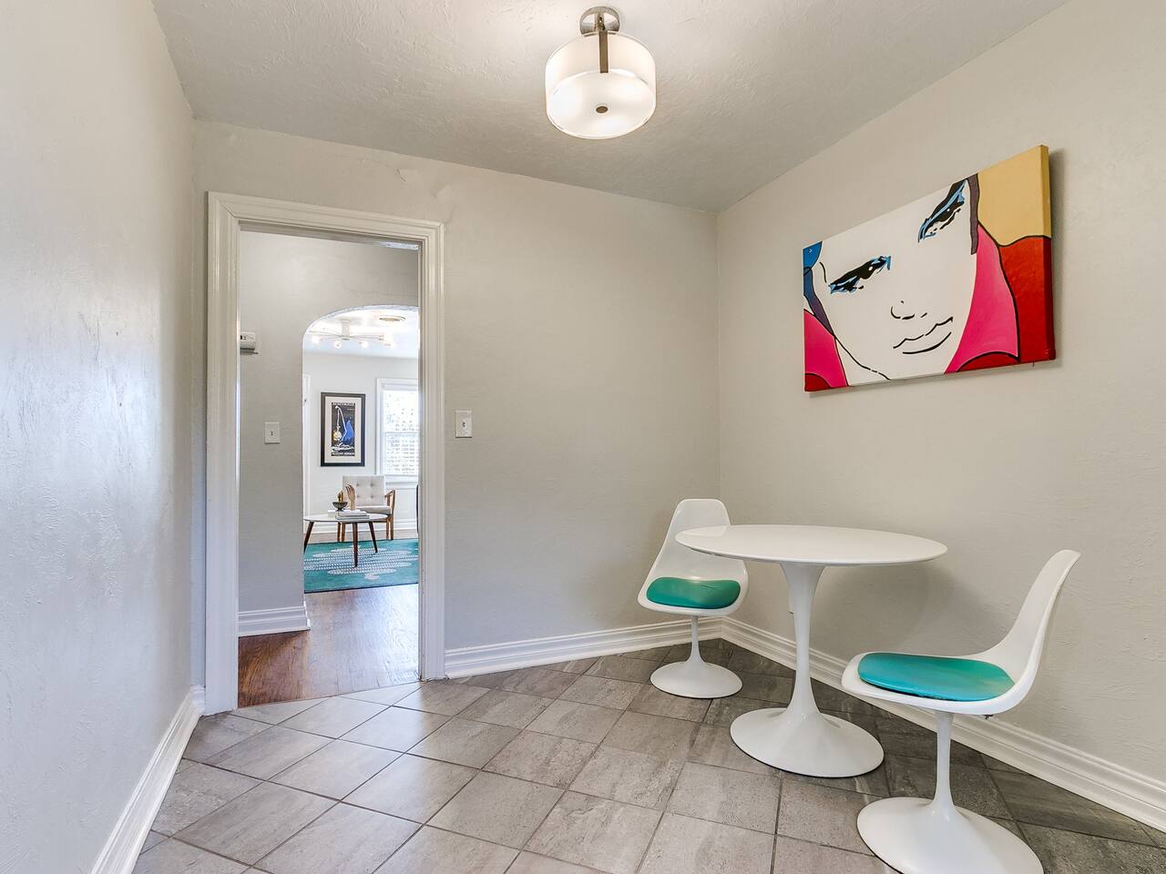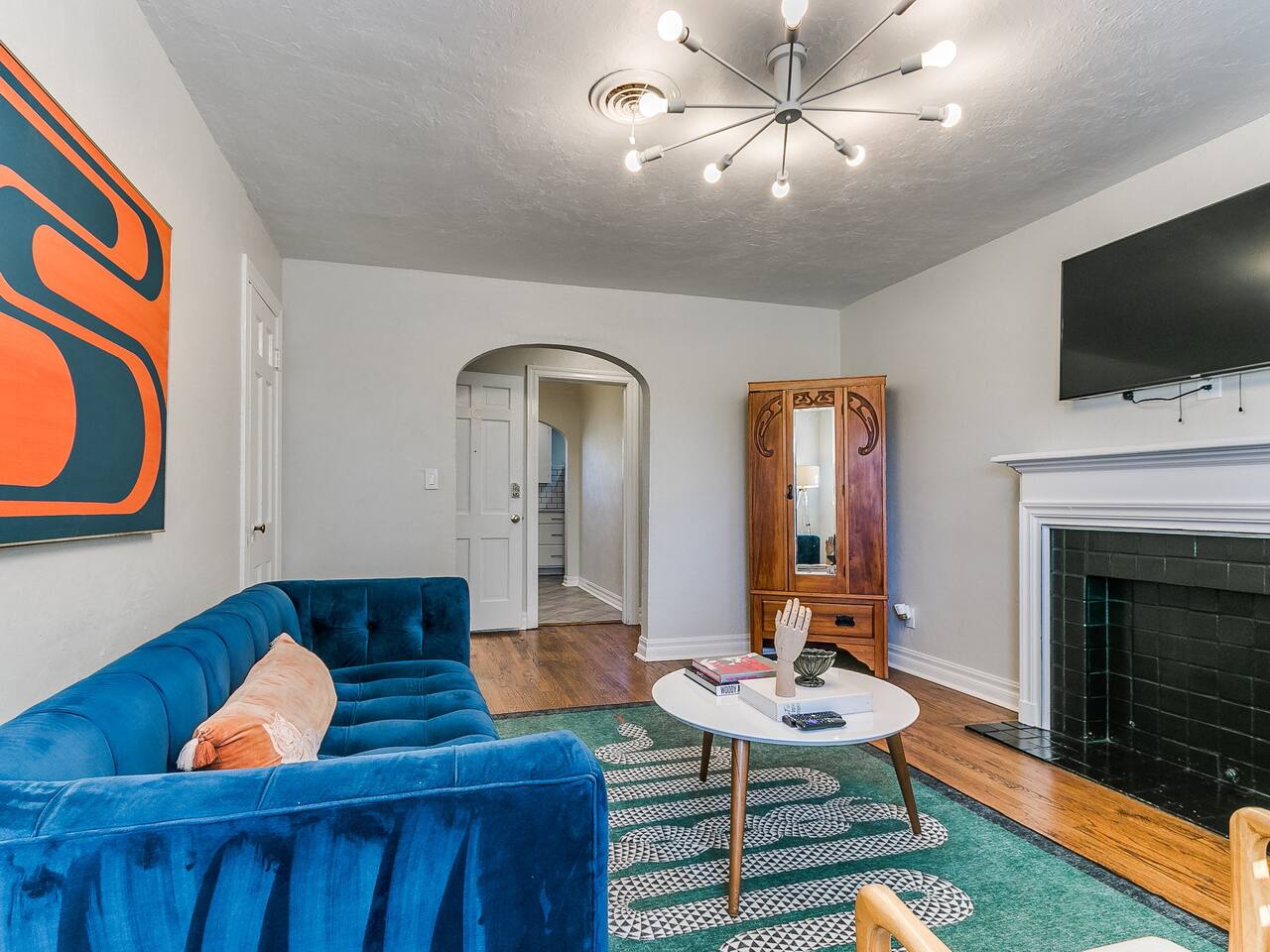 2 bedroom Upstairs Apartment. Sleeps 4 (Can rent entire building to sleep 13) Welcome to your stylish Art Deco retreat in the heart of Oklahoma City! This charming two-bedroom, one-bath apartment is a perfect blend of vintage glamour and modern comfort, capturing the elegance and energy of the past with a fun, contemporary twist. Whether you’re here for business, pleasure, or a little of both, this Art Deco gem offers a one-of-a-kind stay with a touch of old-school glamour.