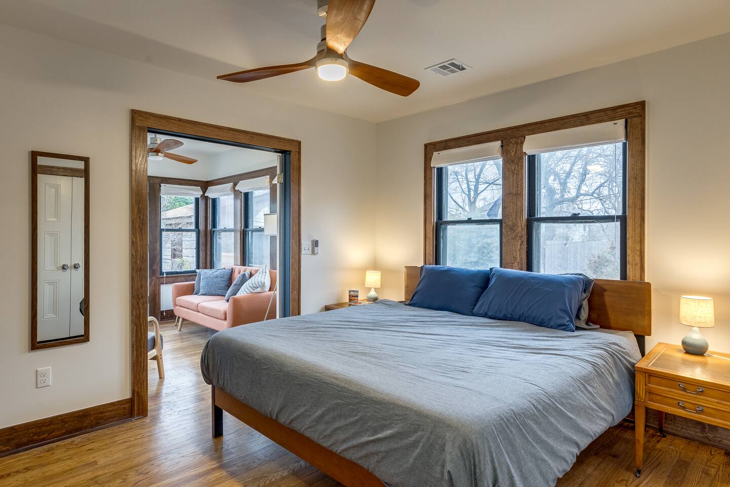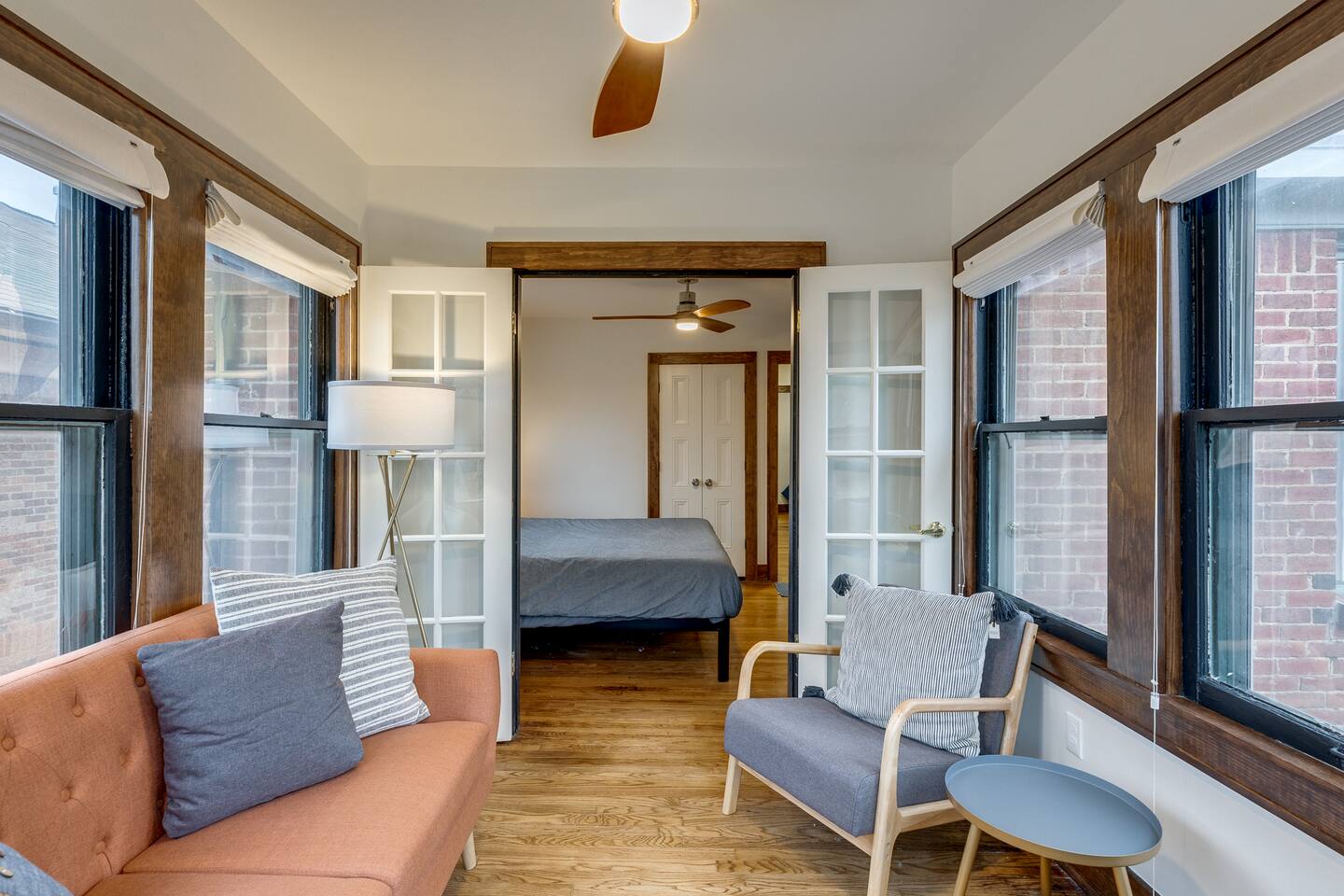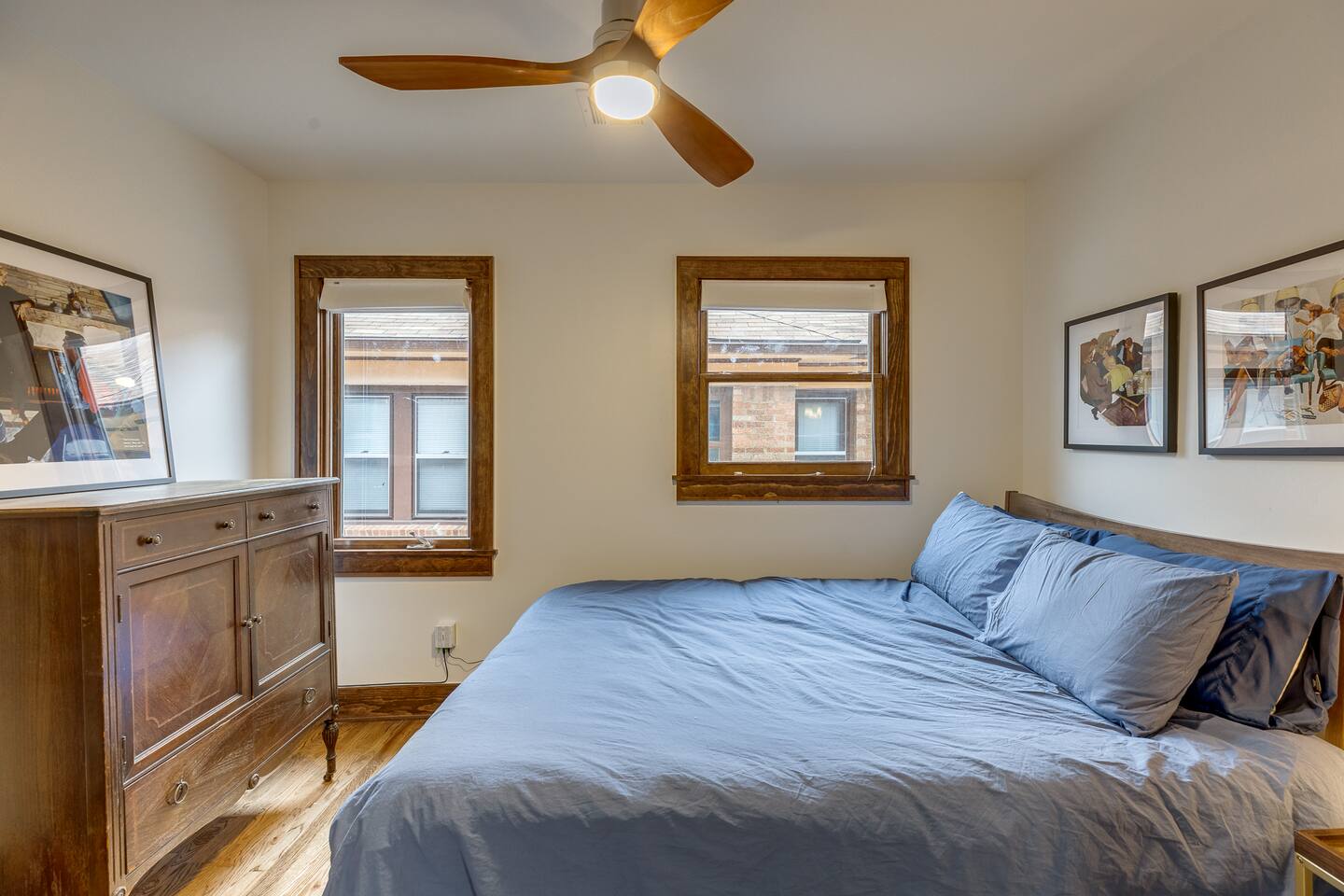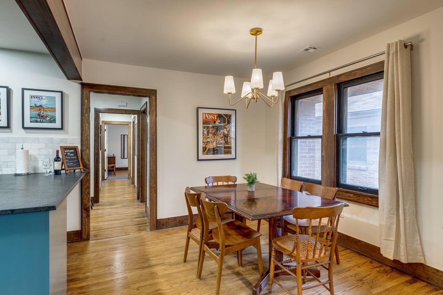 This residence seamlessly blends vintage character with modern comforts, offering an ideal retreat for families, friends, or business travelers. Historic Charm: Experience the allure of early 20th-century architecture with original hardwood floors, detailed woodwork, and classic design elements that tell a story of timeless elegance. Modern Amenities: Enjoy a fully equipped kitchen, high-speed Wi-Fi, and comfortable furnishings designed to make your stay as convenient and relaxing as possible. Spacious Living Areas: With two well-appointed bedrooms and 1 full bathroom, there's ample space to accommodate up to six guests comfortably. Outdoor Space: The duplex sits on a generous 7,850 sq ft lot, providing a serene backyard perfect for morning coffee or evening gatherings. The outdoor space is shared with the unit next door.